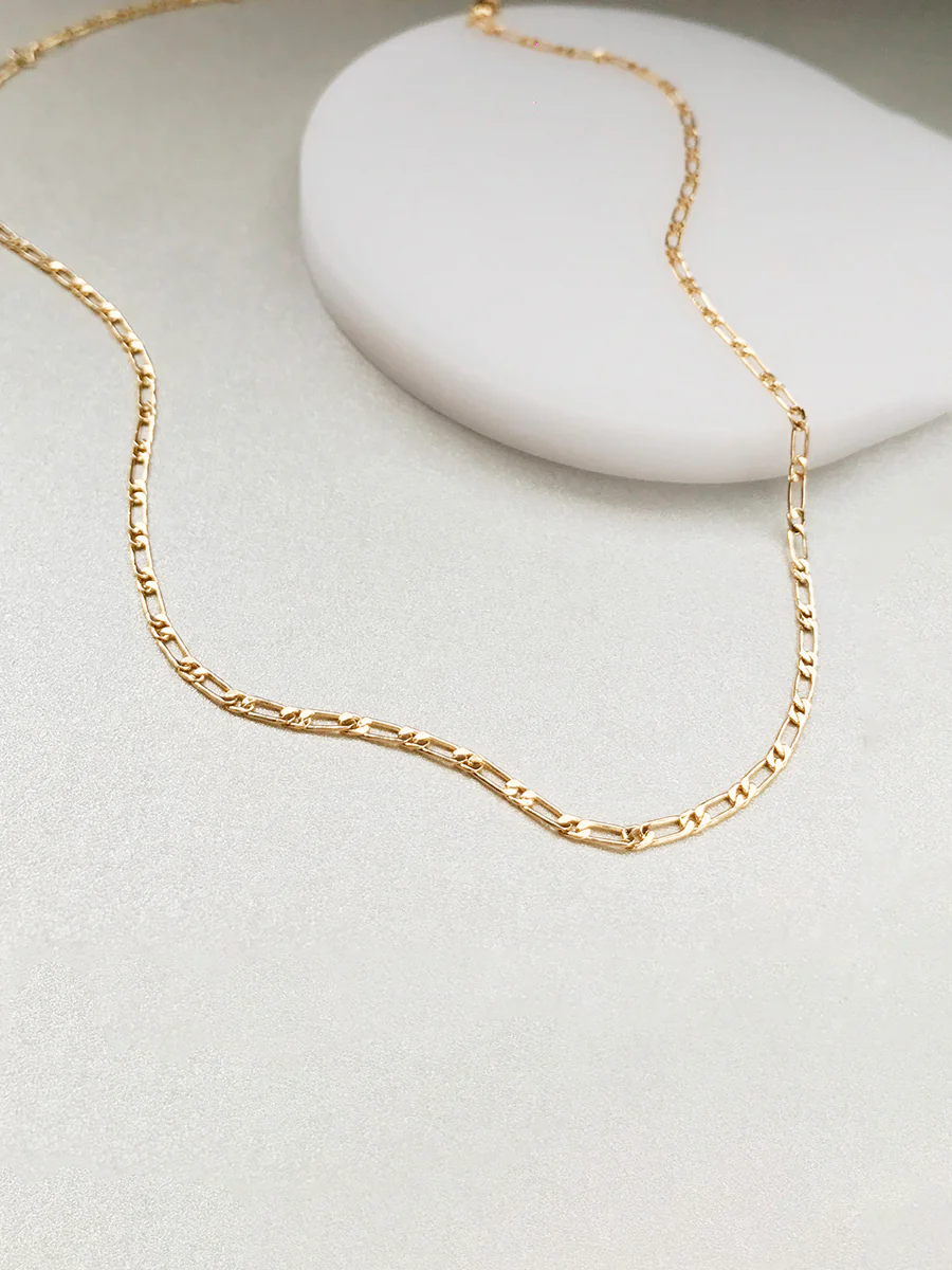Our Figaro Chain Necklace is the balance you need between chunky and petite. The 14K gold plated figaro chain is the perfect piece to subtly elevate your outfit.
